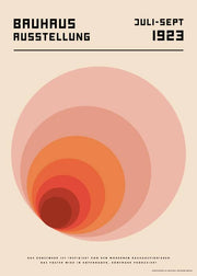 Bauhaus udstillings- kunstplakat fra en Bauhaus udstilling fra 1923. Bauhaus er en forkortelse for navnet for Staatliches Bauhaus, en tysk højskole for design og anvendt arkitektur som eksisterede fra 1919 til den blev lukket efter pres fra nazisterne i 1933. Weimar udstillingen, der for første gang blev afholdt i 1923, var den første store Bauhaus udstilling, som skolen afholdte. Udstillingen formål var at fremvise skolens nye stil. På denne plakat ses et levende motiv i en fersken farver, hvilket skaber en illusion af et echo ved hjælp af de forskellige farver.