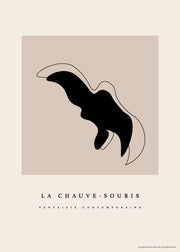 Kunstplakat af en flagermus. På denne plakat ses et abstrakt motiv af en sort flagermus op af en beige baggrund. Plakaten er super enkel og minimalistisk.