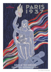 Vintage kunstplakat af Leonetto Cappiello, for en fransk kunstudstilling. Her ses Cappiellos design i art deco-stil med allegoriske figurer, der repræsenterer kunst og teknologi, og udtrykker den idealisme, optimisme, modernitet og innovation, som udstillingen repræsenterede. Leonetto Cappiello var en italiensk og fransk plakatkunstdesigner og maler, der hovedsageligt boede og arbejdede i Paris. Han kaldes nu ofte ‘faren til moderne reklame’ på grund af sin innovation inden for plakatdesign.