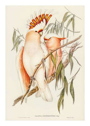 Litografisk plakat af kakaduer. På plakaten ses et litografi af to kakaduer i smukke pinke farver, omkring træer og planter. Plakaten vil fungere fint i sammensætning med en af vores andre fotoportrætplakater eller andre fotoplakater af dyremotiver.