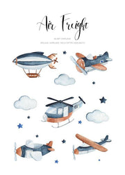 Smuk børneplakat af former for lufttransport. Air Freight er lige så smuk på et drengeværelse, som på et pigeværelse, og passer perfekt i den skandinaviske indretningsstil.