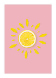 Citrus sun plakat, af en citronskive som sol. Citrus sun plakat, er en del af Postershops originale Digi-art kollektion. Postershops Digi-art kollektion består af eksperimenterende moderne kunst, hvor elementer flyder sammen til abstrakt kunst.