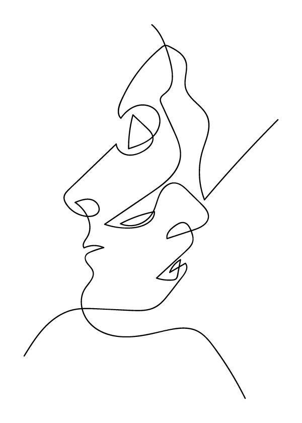 Enkel og intim kunstplakat af en stregtegning af et par, der har øje for hinanden. Plakaten bærer hvid baggrund, hvilket giver designet et ”clean” og raffineret look. Shop flere plakater som denne her!