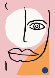 Meget fin grafisk plakat med forskellige mønstre, farver, figurer og former. På denne plakat ses også et tegnet ansigt, der er fokusset på dette værk. Plakatens farver stå i fin kontrast til hinanden og fungere fint omkring de forskellige figurer. Denne plakat er både enkel og yndig og vil passe fint i sammensætning med andre lignende plakater.