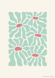 Original Postershop galleriplakat. Denne plakat er en del af Postershops nye gallerikollektion. På plakaten er der illustreret fine turkise blomster, bestående af lyserøde elementer. Plakaten er super enkel samt minimalistisk.