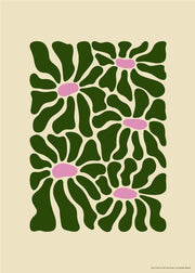 Original Postershop galleriplakat. Denne plakat er en del af Postershops nye gallerikollektion. På plakaten er der illustreret fine skovgrønne blomster, bestående af lyserøde elementer omkring en neutral baggrund. Plakaten er super enkel samt minimalistisk.