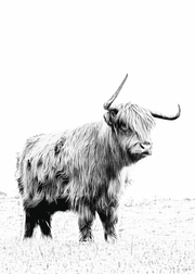 Sort/hvid fotoplakat af en smuk skotsk højlandskvæg. Plakaten vil fungere fint i sammensætning med en af vores andre dyremotiver.