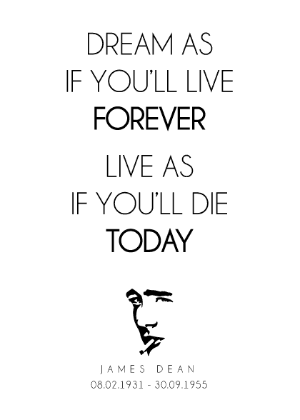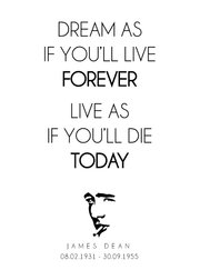 Plakat af et citat fra skuespilleren James Dean. James Dean var en amerikansk skuespiller der efter sin død, blev gendstand for en voldsom idoldyrkelse.