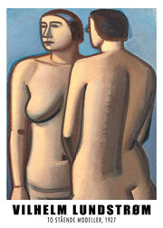 Fin kunstplakat af den eftertragtede danske maler Vilhelm Lundstrøm. Vilhelm Henry Lundstrøm var kunstner og en central skikkelse indenfor den tidlige danske eksperimenterende kunst i perioden 1917-1950. Lundstrøm var i malerlære og gik på teknisk skole, inden han begyndte på kunstakademiet i 1913, men han gennemførte ikke uddannelsen. I 1917 introducerede han collagen i Danmark. På denne plakat ses to nøgne kvinder stå model til denne fine plakat. \n \nTryk her at shoppe mere Lundstrøm!