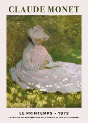 Super fin kunstplakat inspireret af den eftertragtede maler Claude Monet. Claude Monet er en af de mest berømte malere gennem tiden. Han var franskmand og malede indenfor den kunstretning, som kaldes for impressionismen. Kort fortalt betyder det, at man primært maler udendørs hverdagsmotiver med lyse farver. Det vigtigste var, at skildre lysets påvirkning af et motiv med halv-grove penselstrøg. Denne stil var ikke velanset i begyndelsen af Monets karriere. På denne fine plakat ses en smuk kvinde.