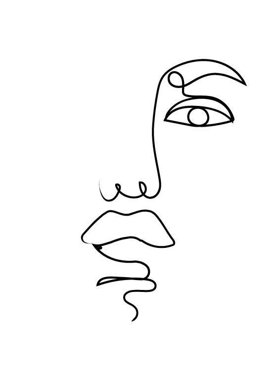 Rigtig smuk stregtegning plakat, der tager en kvindens smukke ansigtsstrukturer i fokus.