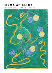 Kunstplakat af værket “ The Primordial Chaos, No. 13” fra 1917, af den svenske kunstner Hilma af Klint, som levede fra 1862 til 1944. Klint er især kendt for sine geometriske og farverige værker og hendes malerier er visuelle repræsentationer af komplekse filosofiske idéer.