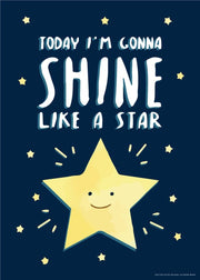 Fin børneplakat med tekst og en stjerne. På plakaten står teksten "I dag vil jeg skinne som en stjerne". Plakaten vil være perfekt hvis du mangler en sød måde at pifte dit børneværelse op på. Denne fine plakat vil kunne passe ind i enhver indretningsstil. Derudover vil den også passe fint i en vægkollektion med andre børneplakater på både pige- og drengeværelset.