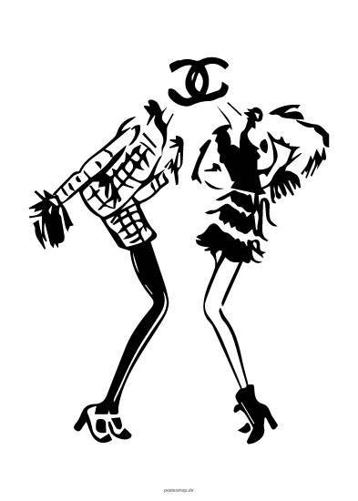 Grafisk silhuet plakat af to piger i Chanel. Plakaten er enkel og vil passe perfekt i hjemmet hos enhver fashionista.