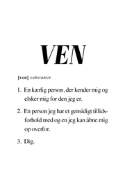 Minimalistisk definationsplakat af "ven". Plakaten vil fungere fint som gave til verdens bedste og sødeste ven. Den kan forøvrigt sammensættes med andre tekstplakater eller fotoplakater.